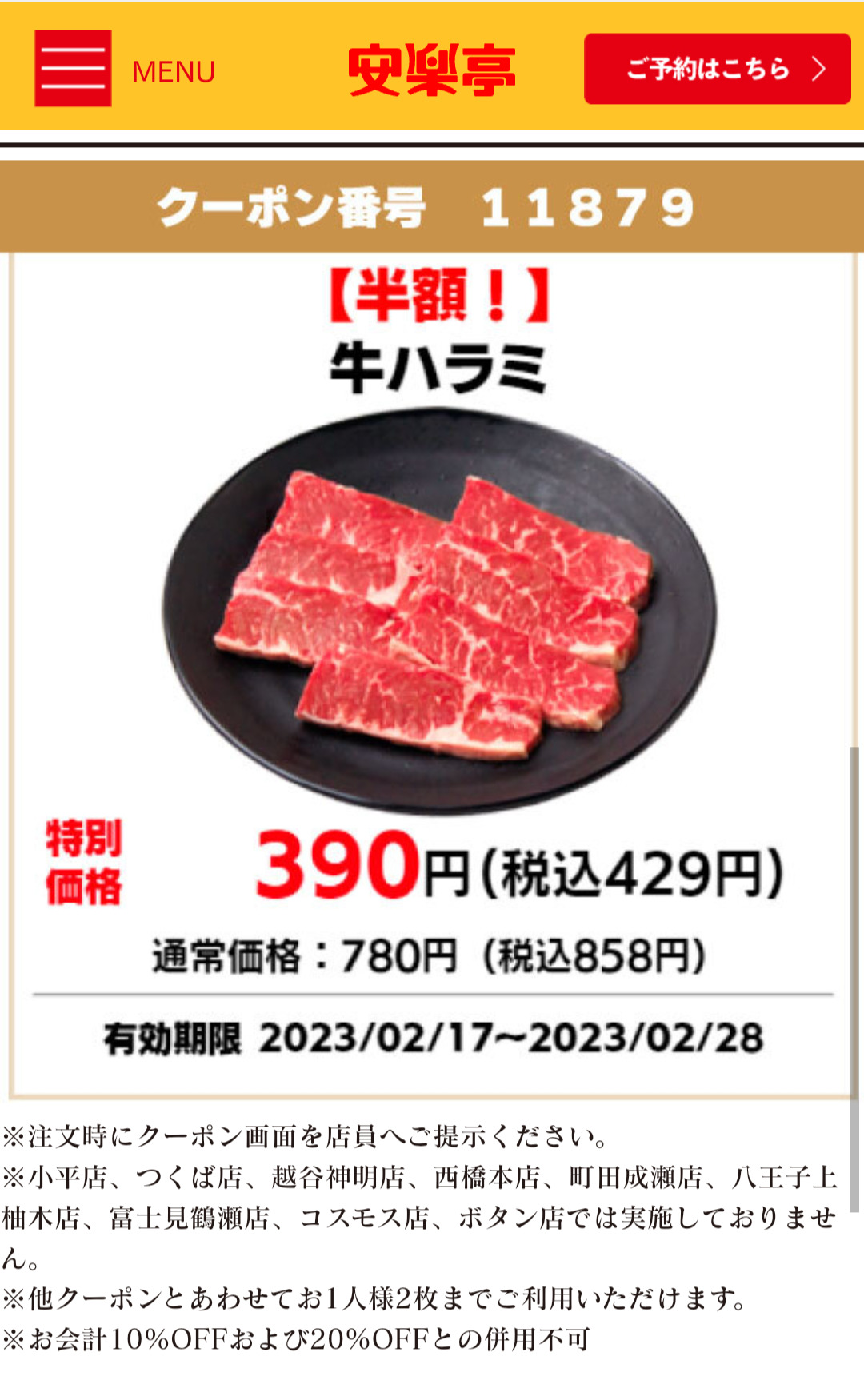 Screenshot_2023-02-25-16-40-43-64 Published 2023年2月25日 at 1080 × 1751 in 【2024年2月最新】安楽亭の割引クーポンまとめ情報 広告 ← Previous Next →