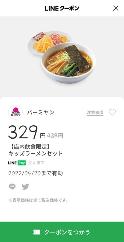 店内飲食限定キッズラーメンセット110円引き Published 2022年4月12日 at 400 × 780 in 【2024年2月最新】バーミヤンの割引クーポンまとめ情報 店内飲食限定キッズラーメンセット110円引き 広告 ← Previous Next →