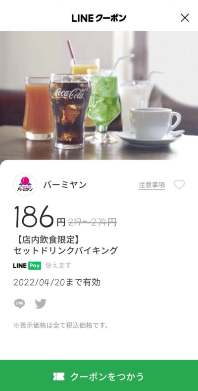 店内限定セットドリンクバイキング最大88円引き Published 2022年4月12日 at 400 × 787 in 【2024年2月最新】バーミヤンの割引クーポンまとめ情報 店内限定セットドリンクバイキング最大88円引き 広告 ← Previous Next →