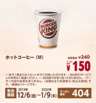 バーガーキングホットコーヒー(M)90円引きクーポン Published 2019年12月6日 at 327 × 352 in 【2024年2月最新】バーガーキングの割引クーポン厳選まとめ情報 ホットコーヒー(M)90円引き 広告 ← Previous Next →
