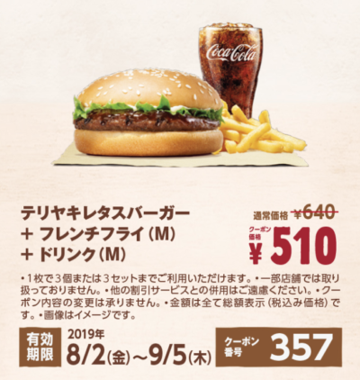 テリヤキレタス+ポテトM+ドリンクM130円引き