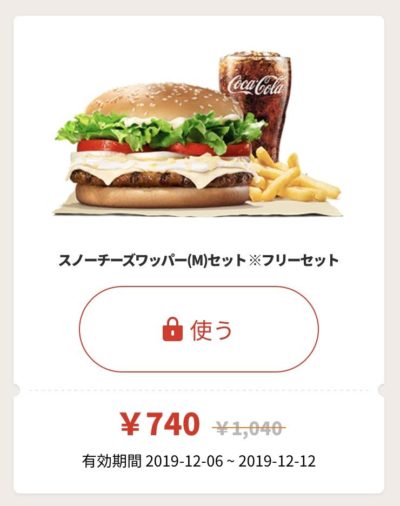 バーガーキングのスノーチーズワッパー(M)セット※フリーセット300円引きクーポン Published 2019年12月6日 at 400 × 506 in 【2024年2月最新】バーガーキングの割引クーポン厳選まとめ情報 スノーチーズワッパー(M)セット※フリーセット300円引き 広告 ← Previous Next →