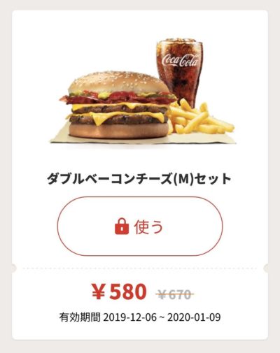 バーガーキングのダブルベーコンチーズ(M)セット90円引きクーポン Published 2019年12月6日 at 400 × 505 in 【2024年2月最新】バーガーキングの割引クーポン厳選まとめ情報 ダブルベーコンチーズ(M)セット90円引き 広告 ← Previous Next →
