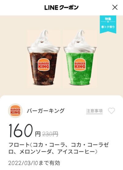 バーガーキング フロート70円引き Published 2022年3月1日 at 400 × 553 in 【2024年2月最新】バーガーキングの割引クーポン厳選まとめ情報 フロート70円引き 広告 ← Previous Next →