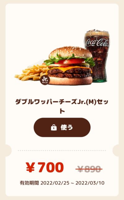 バーガーキングダブルワッパーチーズjr,Mセット190円引き Published 2022年3月4日 at 400 × 645 in 【2024年2月最新】バーガーキングの割引クーポン厳選まとめ情報 ダブルワッパーチーズjr,Mセット190円引き 広告 ← Previous Next →