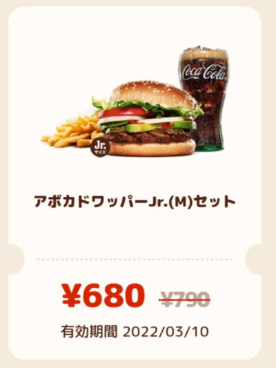 バーガーキングアボカドワッパーjr.Mセット110円引き Published 2022年3月4日 at 400 × 533 in 【2024年2月最新】バーガーキングの割引クーポン厳選まとめ情報 アボカドワッパーjr.Mセット110円引き 広告 ← Previous Next →