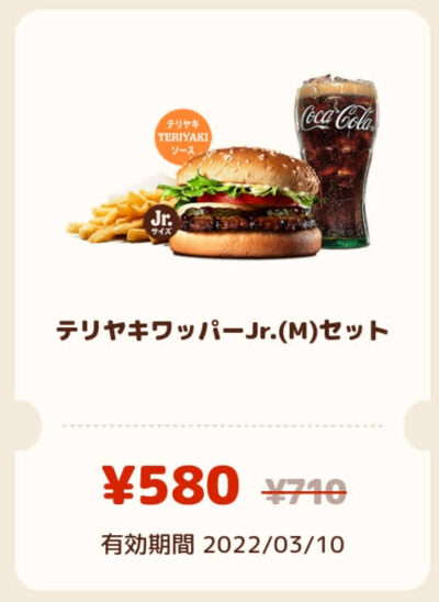 バーガーキングテリヤキワッパーJr.Mセット130円引き Published 2022年3月4日 at 400 × 548 in 【2024年2月最新】バーガーキングの割引クーポン厳選まとめ情報 テリヤキワッパーJr.Mセット130円引き 広告 ← Previous Next →