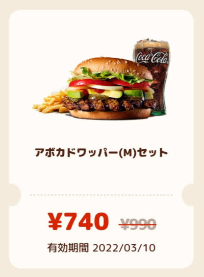 バーガーキングアボカドワッパーMセット250円引き Published 2022年3月4日 at 400 × 542 in 【2024年2月最新】バーガーキングの割引クーポン厳選まとめ情報 アボカドワッパーMセット250円引き 広告 ← Previous Next →