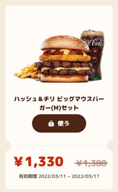 バーガーキングハッシュチリビックマウスバーガーMセット30円引き Published 2022年3月13日 at 400 × 650 in 【2024年2月最新】バーガーキングの割引クーポン厳選まとめ情報 ハッシュチリビックマウスバーガーMセット30円引き 広告 ← Previous Next →