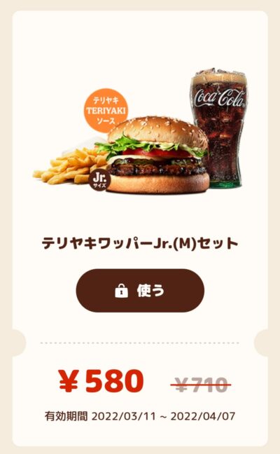バーガーキングテリヤキワッパーJr.Mセット130円引き Published 2022年3月13日 at 400 × 648 in 【2024年2月最新】バーガーキングの割引クーポン厳選まとめ情報 テリヤキワッパーJr.Mセット130円引き 広告 ← Previous Next →