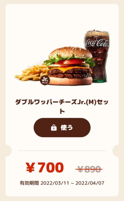 バーガーキングダブルワッパーチーズjr,Mセット190円引き Published 2022年3月13日 at 400 × 649 in 【2024年2月最新】バーガーキングの割引クーポン厳選まとめ情報 ダブルワッパーチーズjr,Mセット190円引き 広告 ← Previous Next →