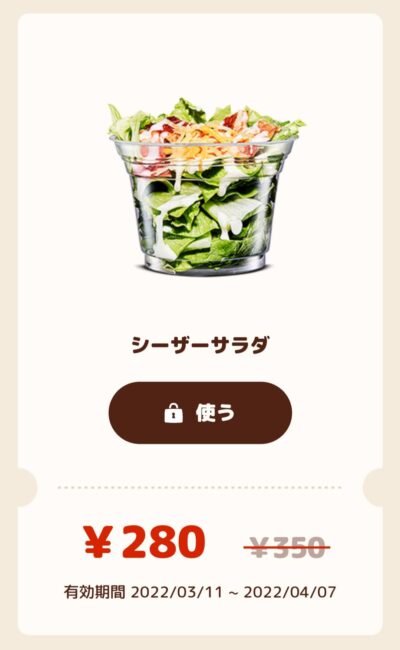 バーガーキングシーザーサラダ70円引き Published 2022年3月13日 at 400 × 650 in 【2024年2月最新】バーガーキングの割引クーポン厳選まとめ情報 シーザーサラダ70円引き 広告 ← Previous Next →