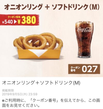 オニオンリング+ソフトドリンクM160円引き Published 2019年8月5日 at 400 × 425 in 【2024年2月最新】バーガーキングの割引クーポン厳選まとめ情報 オニオンリング+ソフトドリンクM160円引き 広告 ← Previous Next →