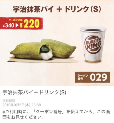 宇治抹茶パイ+ドリンクS120円引き Published 2019年8月5日 at 400 × 433 in 【2024年2月最新】バーガーキングの割引クーポン厳選まとめ情報 宇治抹茶パイ+ドリンクS120円引き 広告 ← Previous Next →