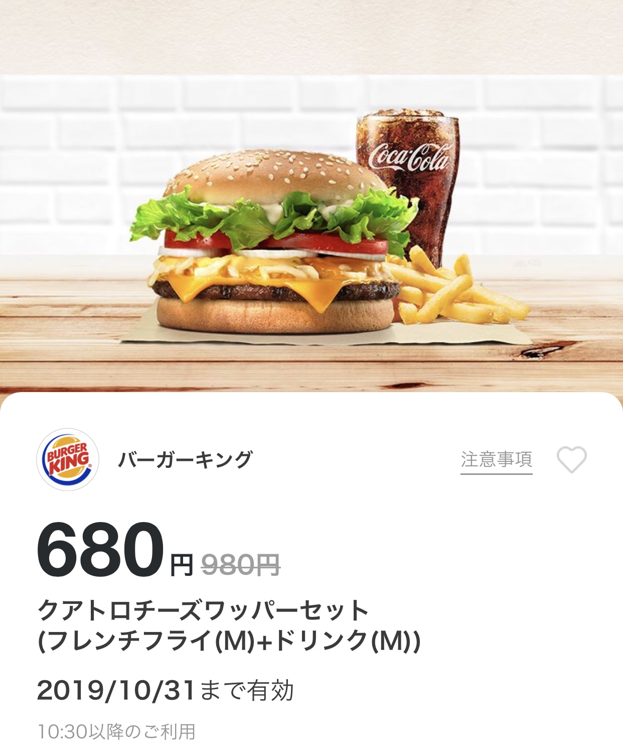 バーガーキングのクアトロチーズワッパーセット300円引きクーポン Published 2019年10月19日 at 1242 × 1500 in 【2024年2月最新】バーガーキングの割引クーポン厳選まとめ情報 広告 ← Previous Next →