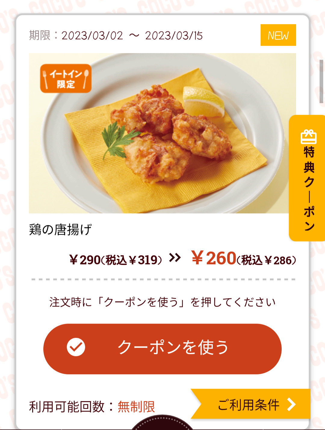 Screenshot_2023-03-02-18-18-56-77_d6d3ea1d5f9b7c618dc3c63d0f6afae5 Published 2023年3月2日 at 1080 × 1427 in 【2024年2月最新】ココスの割引クーポンまとめ情報 広告 ← Previous Next →
