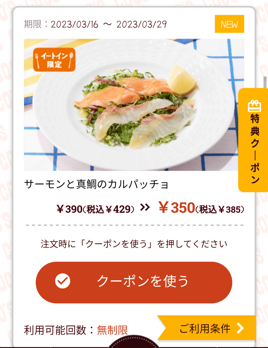 Screenshot_2023-03-18-17-20-23-35_d6d3ea1d5f9b7c618dc3c63d0f6afae5 Published 2023年3月18日 at 1080 × 1402 in 【2024年2月最新】ココスの割引クーポンまとめ情報 広告 ← Previous Next →