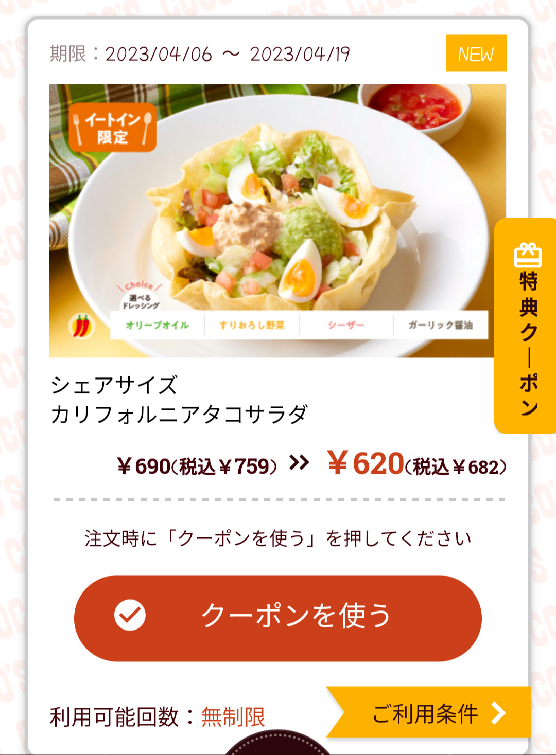 Screenshot_2023-04-08-15-48-18-77_d6d3ea1d5f9b7c618dc3c63d0f6afae5 Published 2023年4月8日 at 1080 × 1468 in 【2024年2月最新】ココスの割引クーポンまとめ情報 広告 ← Previous Next →