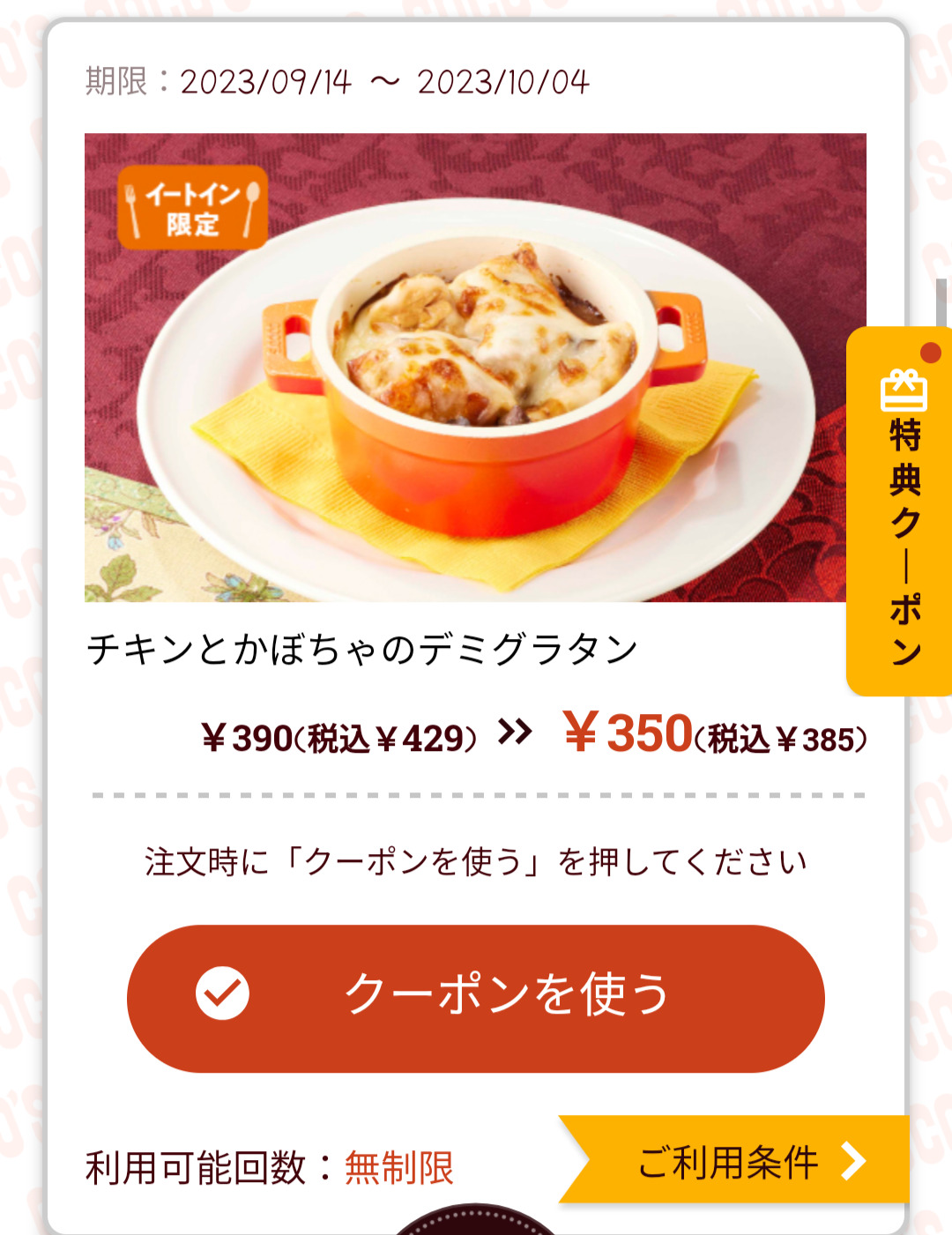 Screenshot_2023-09-20-15-39-35-91_d6d3ea1d5f9b7c618dc3c63d0f6afae5 Published 2023年9月20日 at 1080 × 1401 in 【2024年2月最新】ココスの割引クーポンまとめ情報 広告 ← Previous Next →