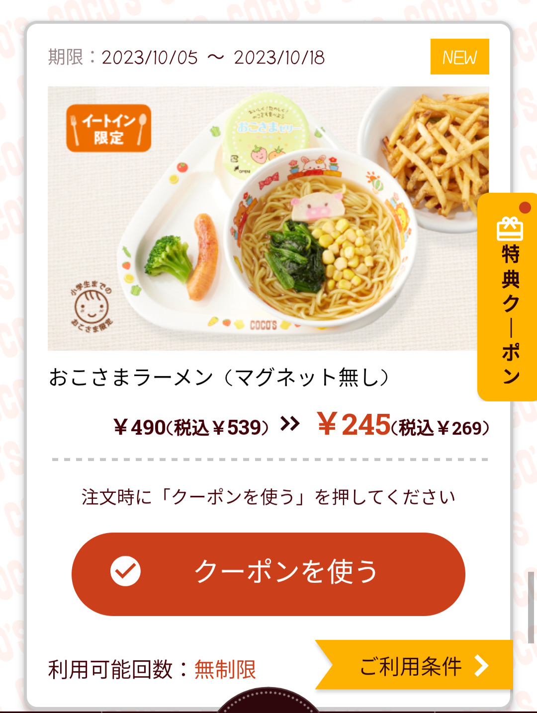 Screenshot_2023-10-05-18-56-00-83_d6d3ea1d5f9b7c618dc3c63d0f6afae5 Published 2023年10月5日 at 1080 × 1435 in 【2024年2月最新】ココスの割引クーポンまとめ情報 広告 ← Previous Next →