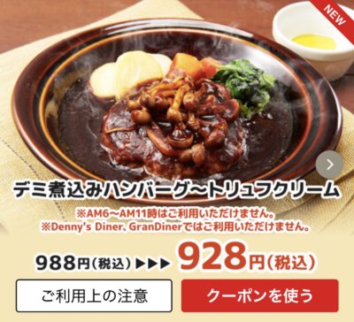 デニーズのデミ煮込みハンバーグ60円引きクーポン Published 2019年10月15日 at 400 × 364 in 【2024年2月最新】デニーズの割引クーポンまとめ情報 広告 ← Previous Next →