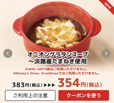 デニーズのオニオングラタンスープ29円引きクーポン Published 2019年10月15日 at 400 × 363 in 【2024年2月最新】デニーズの割引クーポンまとめ情報 広告 ← Previous Next →