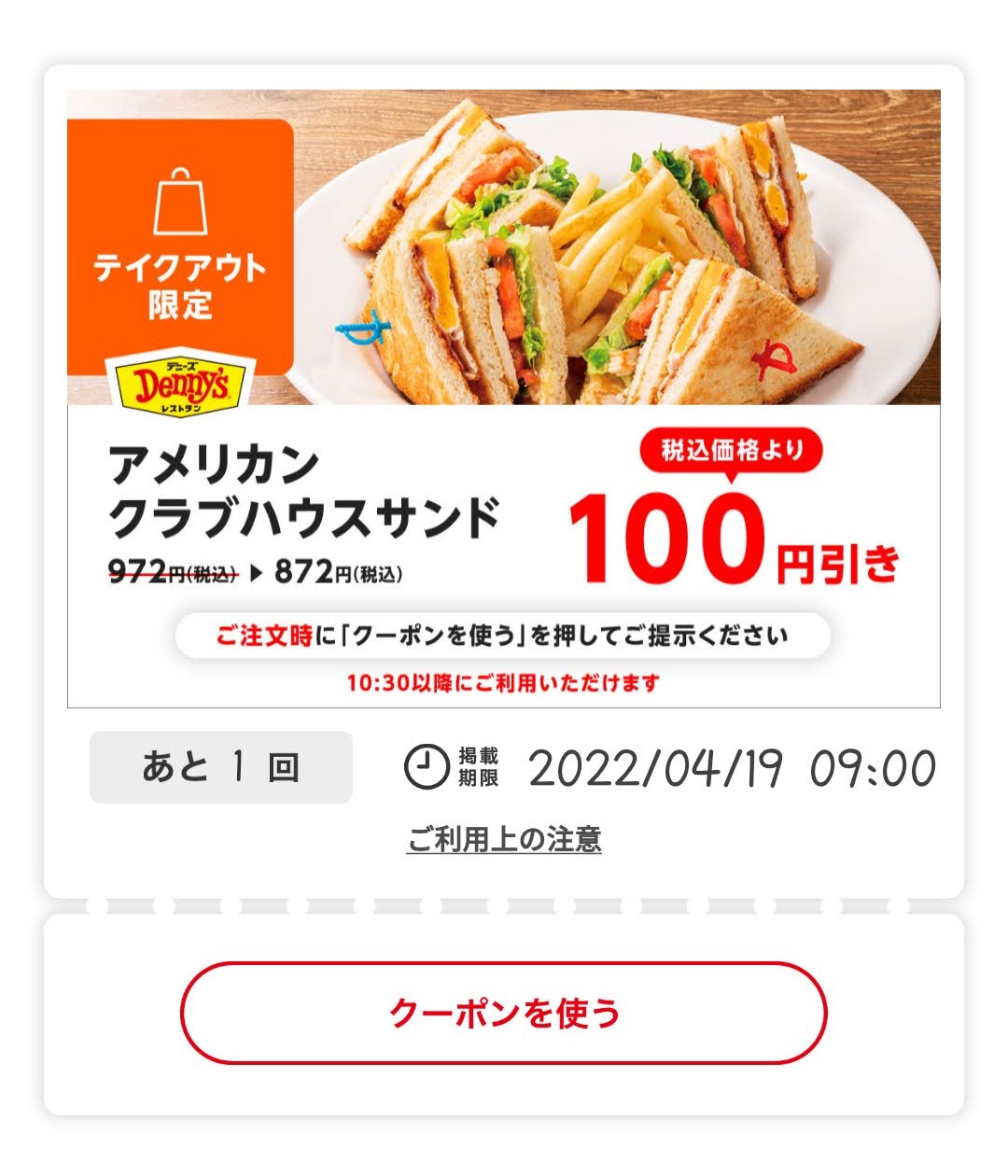 Screenshot_2022-04-13-18-20-37-36_f1ca6483fc73fa7f02a7863cd285b2a9 Published 2022年4月13日 at 1080 × 1260 in 【2024年2月最新】デニーズの割引クーポンまとめ情報 広告 ← Previous Next →