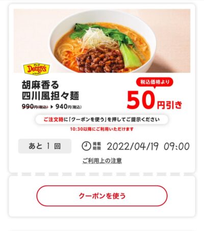 胡麻香る四川風担々麺50円引き Published 2022年4月13日 at 400 × 453 in 【2024年2月最新】デニーズの割引クーポンまとめ情報 胡麻香る四川風担々麺50円引き 広告 ← Previous Next →