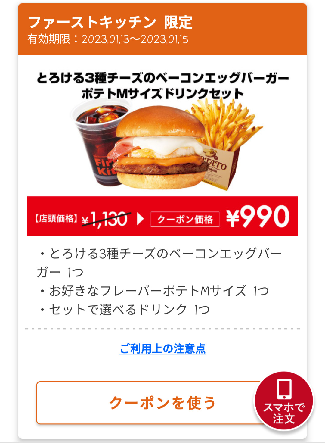Screenshot_2023-01-14-15-22-54-17_4f596d53fa4b0012360217ddb2679274 Published 2023年1月14日 at 1080 × 1471 in 【2024年2月最新】ファーストキッチンの割引クーポンまとめ情報! 広告 ← Previous Next →