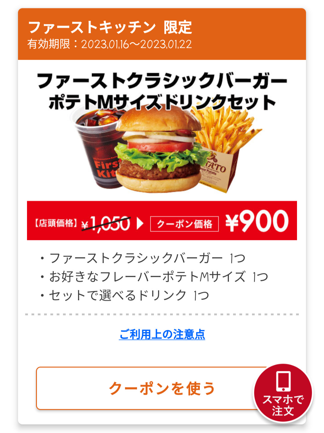 Screenshot_2023-01-21-17-07-30-56_4f596d53fa4b0012360217ddb2679274 Published 2023年1月21日 at 1080 × 1441 in 【2024年2月最新】ファーストキッチンの割引クーポンまとめ情報! 広告 ← Previous Next →