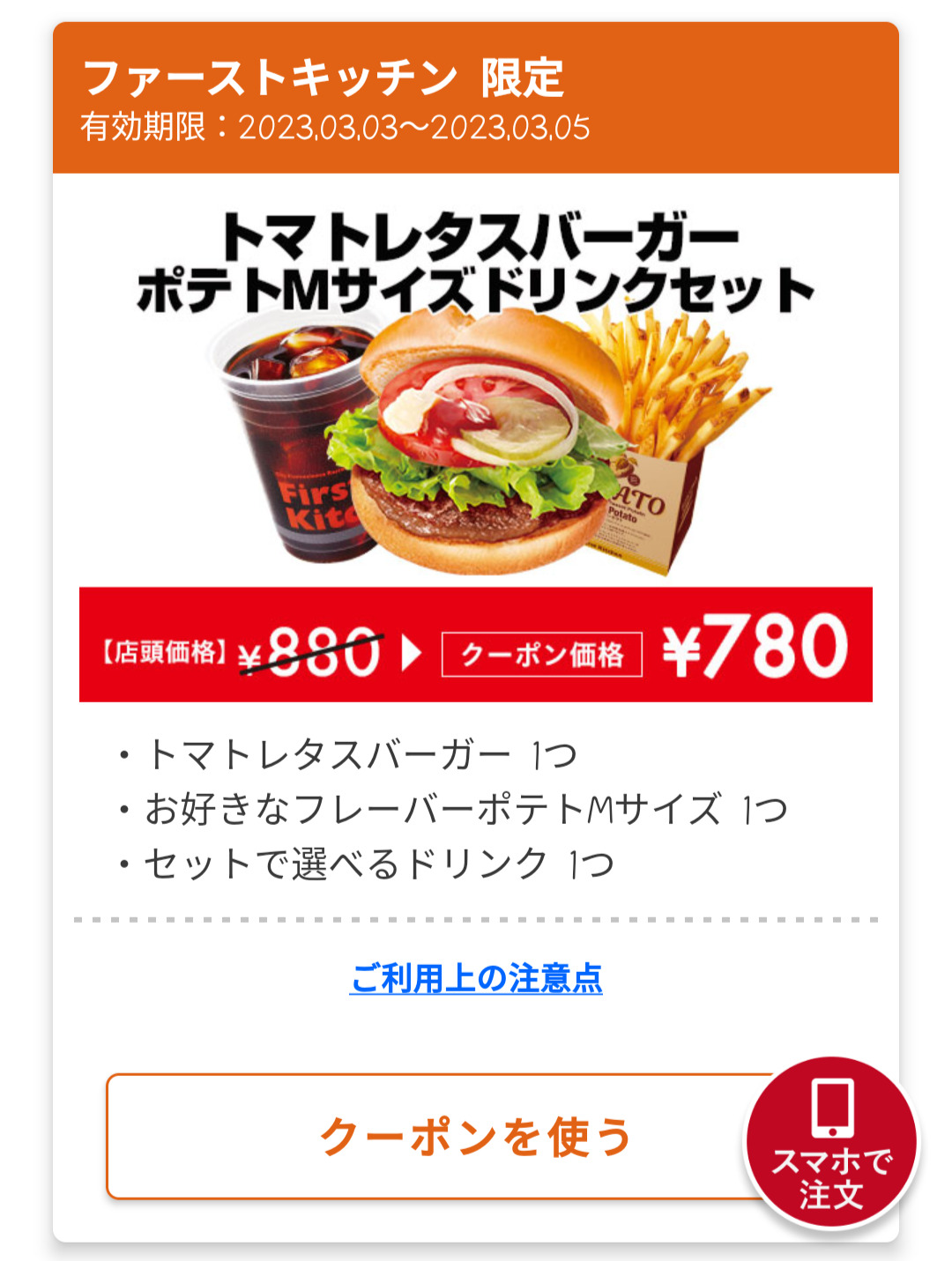 Screenshot_2023-03-04-17-48-33-23_4f596d53fa4b0012360217ddb2679274 Published 2023年3月4日 at 1080 × 1431 in 【2024年2月最新】ファーストキッチンの割引クーポンまとめ情報! 広告 ← Previous Next →