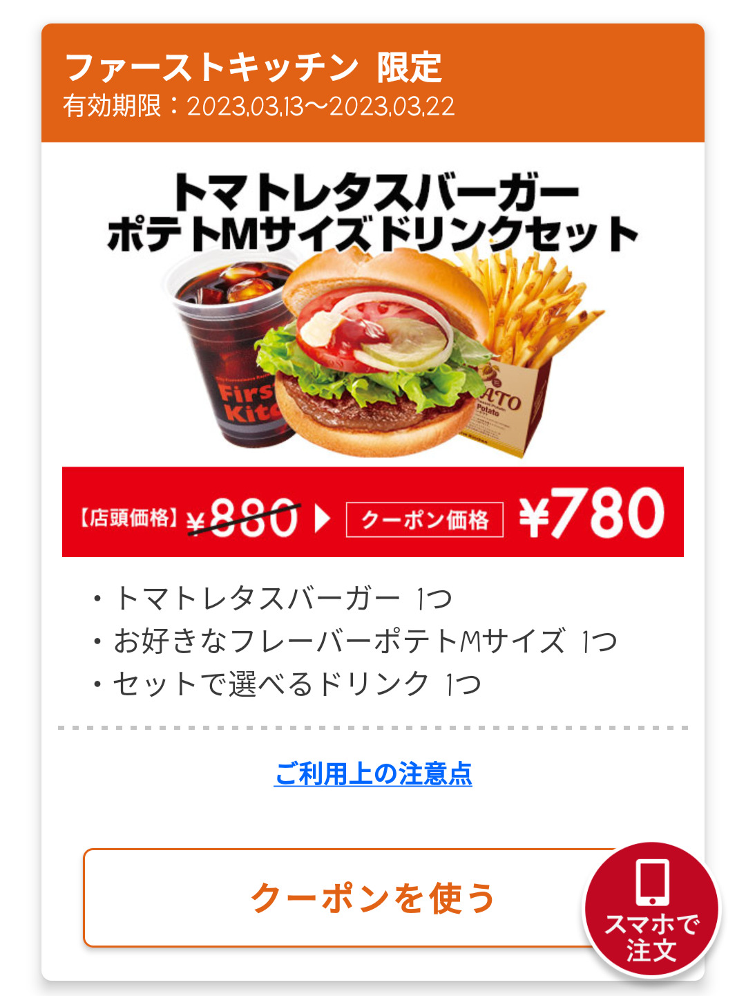 Screenshot_2023-03-14-18-00-31-75_4f596d53fa4b0012360217ddb2679274 Published 2023年3月14日 at 1080 × 1441 in 【2024年2月最新】ファーストキッチンの割引クーポンまとめ情報! 広告 ← Previous Next →