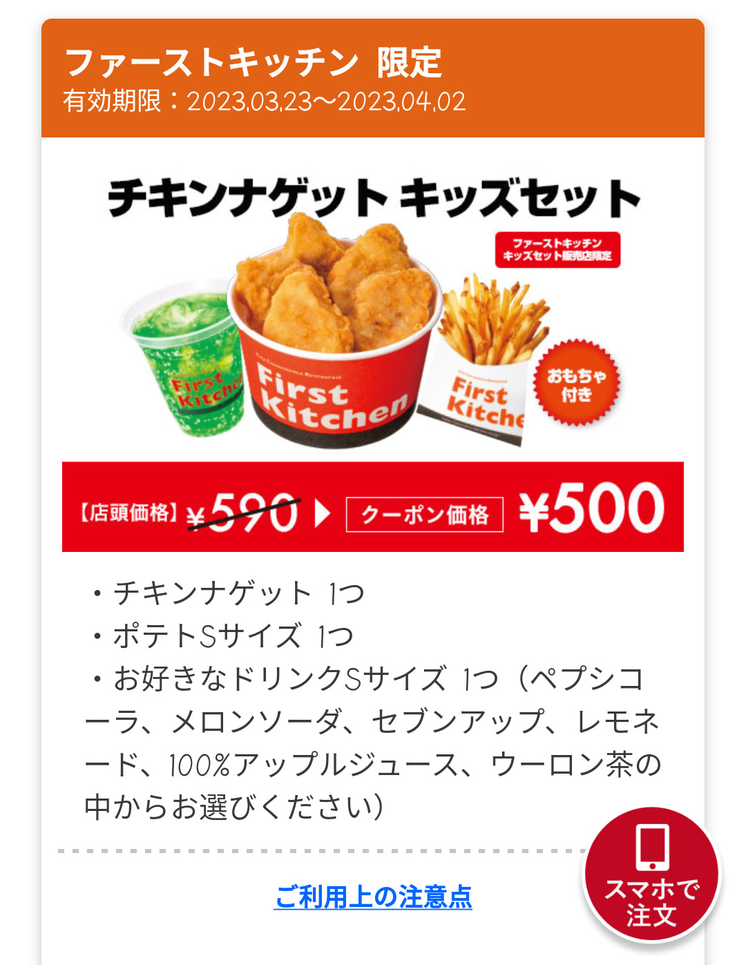 Screenshot_2023-03-23-16-48-15-81_4f596d53fa4b0012360217ddb2679274 Published 2023年3月23日 at 1080 × 1397 in 【2024年2月最新】ファーストキッチンの割引クーポンまとめ情報! 広告 ← Previous Next →