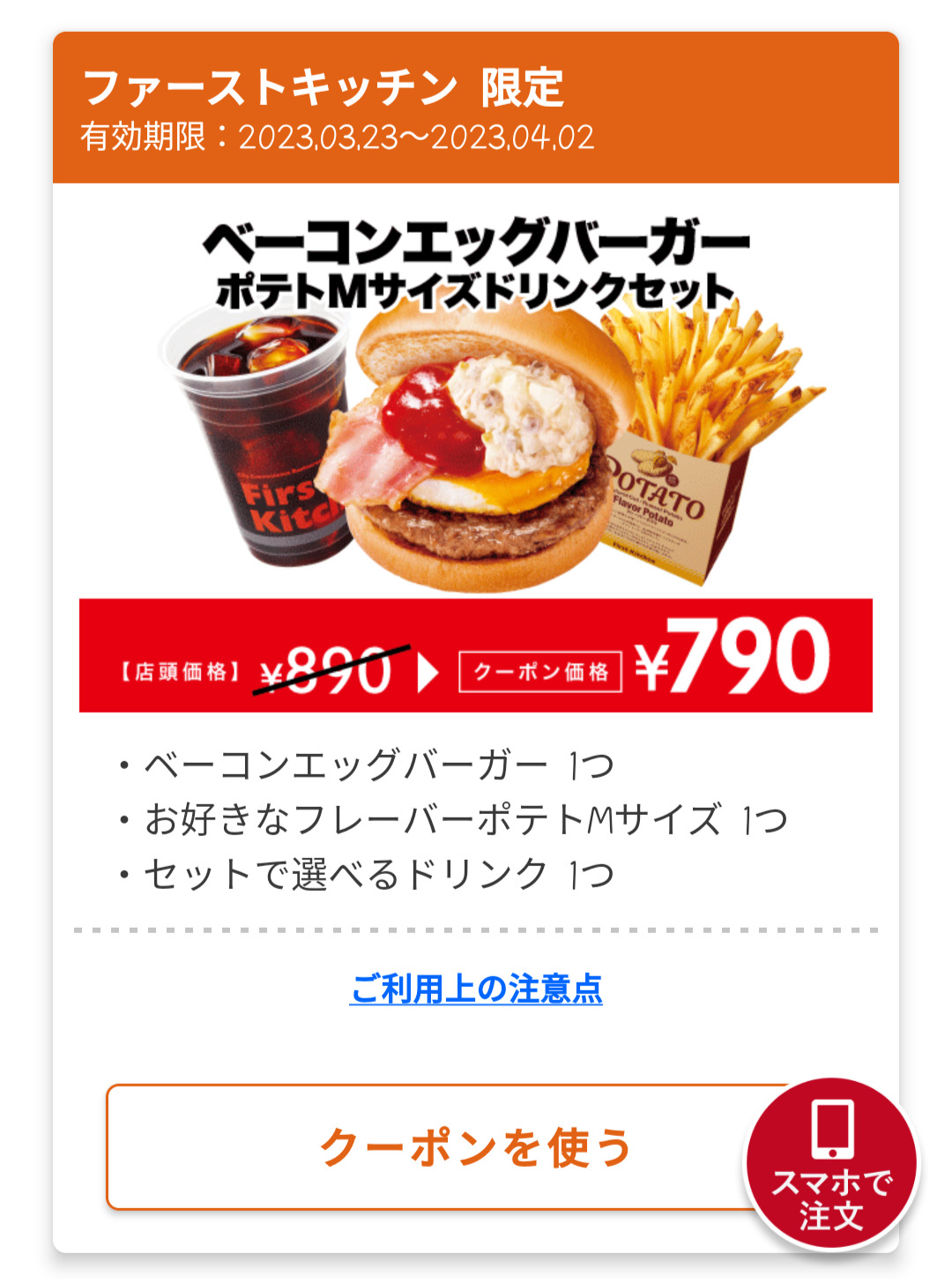 Screenshot_2023-03-23-16-48-23-27_4f596d53fa4b0012360217ddb2679274 Published 2023年3月23日 at 1080 × 1456 in 【2024年2月最新】ファーストキッチンの割引クーポンまとめ情報! 広告 ← Previous Next →