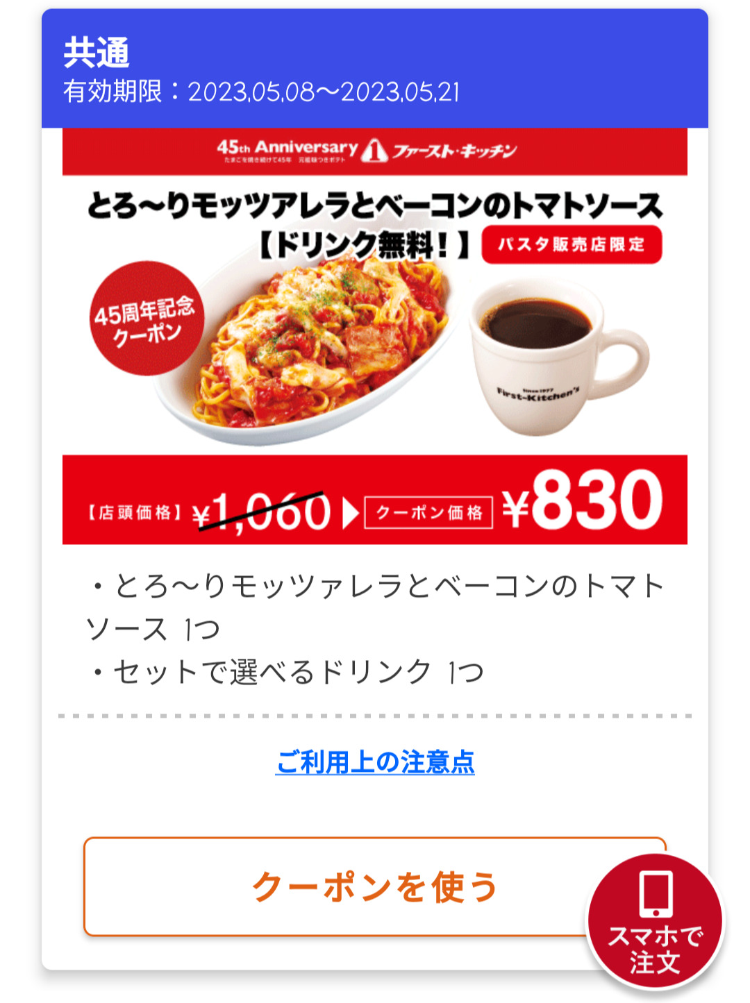 Screenshot_2023-05-17-16-31-38-44_4f596d53fa4b0012360217ddb2679274 Published 2023年5月17日 at 1080 × 1445 in 【2024年2月最新】ファーストキッチンの割引クーポンまとめ情報! 広告 ← Previous Next →