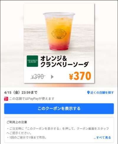 オレンジ&クランベリーソーダ20円引き Published 2022年3月30日 at 400 × 486 in 【2024年2月最新】FRESHNESS BURGER割引クーポンまとめ情報 オレンジ&クランベリーソーダ20円引き 広告 ← Previous Next →