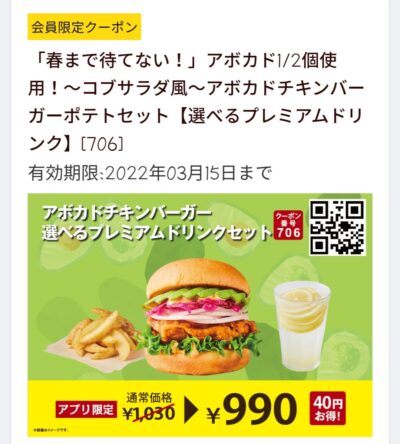 FRESHNESS BURGERクラシックアボカドチキンバーガー選べるプレミアムドリンクセット40円引き Published 2022年3月2日 at 400 × 444 in 【2024年2月最新】FRESHNESS BURGER割引クーポンまとめ情報 クラシックアボカドチキンバーガー選べるプレミアムドリンクセット40円引き 広告 ← Previous Next →