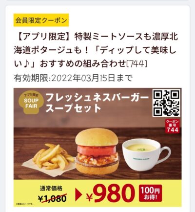 FRESHNESS BURGER フレッシュネスバーガースープセット100円引き Published 2022年3月2日 at 400 × 434 in 【2024年2月最新】FRESHNESS BURGER割引クーポンまとめ情報 フレッシュネスバーガースープセット100円引き 広告 ← Previous Next →