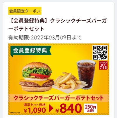 FRESHNESS BURGER クラシックチーズバーガーポテトセット250円引き Published 2022年3月2日 at 400 × 404 in 【2024年2月最新】FRESHNESS BURGER割引クーポンまとめ情報 クラシックチーズバーガーポテトセット250円引き 広告 ← Previous Next →