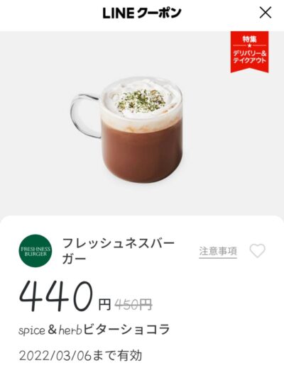 FRESHNESS BURGER spice&herbビターショコラ10円引き Published 2022年3月2日 at 400 × 529 in 【2024年2月最新】FRESHNESS BURGER割引クーポンまとめ情報 spice&herbビターショコラ10円引き 広告 ← Previous Next →