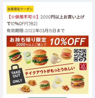 FRESHNESS BURGERお持ち帰り限定 2000円以上ご購入で 10%OFF Published 2022年3月11日 at 400 × 409 in 【2024年2月最新】FRESHNESS BURGER割引クーポンまとめ情報 お持ち帰り限定 2000円以上ご購入で 10%OFF 広告 ← Previous Next →