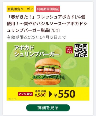 アボカドシュリンプバーガ ー30円引き Published 2022年4月1日 at 400 × 483 in 【2024年2月最新】FRESHNESS BURGER割引クーポンまとめ情報 アボカドシュリンプバーガ ー30円引き 広告 ← Previous Next →