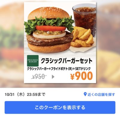 フレッシュネスバーガーのクラシックバーガーセット50円びきクーポン Published 2019年10月25日 at 400 × 383 in 【2024年2月最新】FRESHNESS BURGER割引クーポンまとめ情報 クラシックバーガーセット50円びき 広告 ← Previous Next →