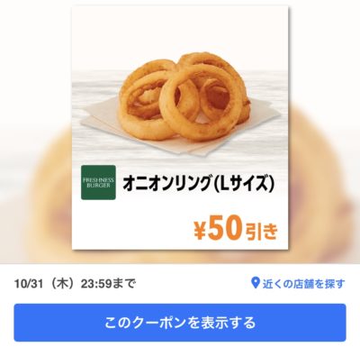 フレッシュネスバーガーのオニオンリング50円びきクーポン Published 2019年10月25日 at 400 × 385 in 【2024年2月最新】FRESHNESS BURGER割引クーポンまとめ情報 オニオンリング50円びき 広告 ← Previous Next →