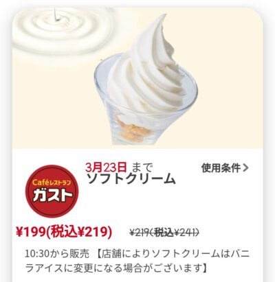 ガストソフトクリーム22円引き Published 2022年3月17日 at 400 × 411 in 【2024年2月最新】ガストの割引クーポンコード・番号まとめ情報 ソフトクリーム22円引き 広告 ← Previous Next →