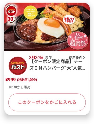 チーズインハンバーグ人気盛り Published 2022年3月24日 at 400 × 526 in 【2024年2月最新】ガストの割引クーポンコード・番号まとめ情報 チーズインハンバーグ人気盛り 広告 ← Previous Next →
