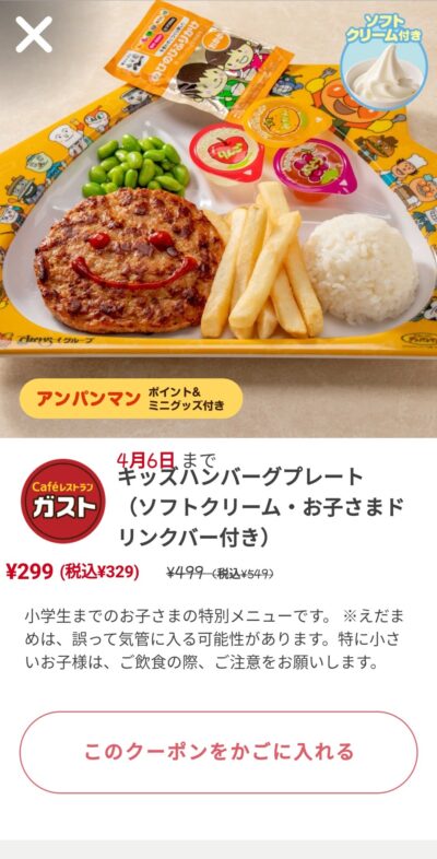 キッズハンバーグプレート220円 引き Published 2022年3月31日 at 400 × 786 in 【2024年2月最新】ガストの割引クーポンコード・番号まとめ情報 キッズハンバーグプレート220円 引き 広告 ← Previous Next →