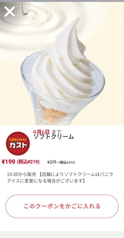 ソフトクリーム22円引き Published 2022年3月31日 at 400 × 770 in 【2024年2月最新】ガストの割引クーポンコード・番号まとめ情報 ソフトクリーム22円引き 広告 ← Previous Next →