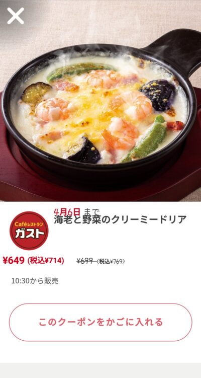 海老と野菜のクリーミードリア55円引き Published 2022年3月31日 at 400 × 751 in 【2024年2月最新】ガストの割引クーポンコード・番号まとめ情報 海老と野菜のクリーミードリア55円引き 広告 ← Previous Next →