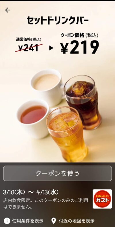 セットドリンクバー22円引き Published 2022年3月31日 at 400 × 788 in 【2024年2月最新】ガストの割引クーポンコード・番号まとめ情報 セットドリンクバー22円引き 広告 ← Previous Next →